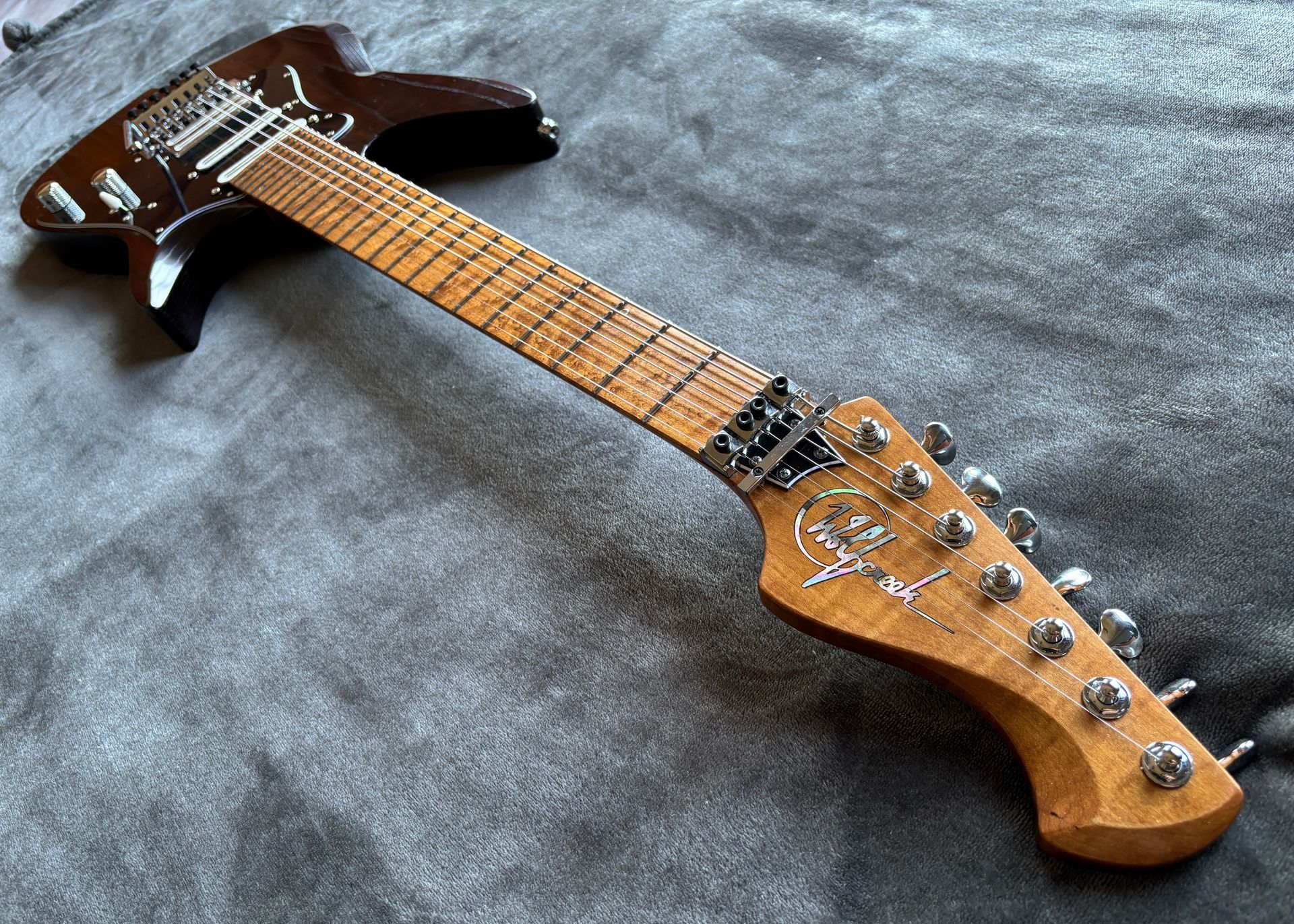 7 String, tremolo bridge, solid body, electric guitar